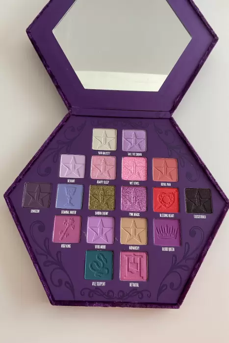 Blood Lust Palette. 18 tonos mate, metálico y aluminio, mezclando púrpuras reales, rosas delicados y oscuros desviados.Un hexágono de terciopelo sintético de alta gama con un broche de metal dorado. ORIGINAL