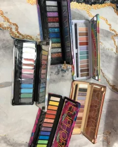 Colección de 5 paletas de sombras marca BYS, paleta unicornio,cristal,glitter,euphoria y fantasy. Contienen de todos los tonos y glitters para hacer diversos looks. Todas nuevas y con etiqueta.
