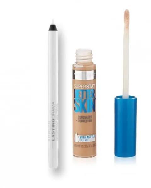 Llévate un delineador de ojos en color blanco lasting drama 606 y un corrector Better Skin 30 de Maybelline.