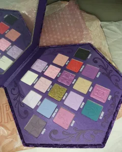 Paleta Blood Lust Jeffree Star Original • Artistry Palette •Vegana y libre de crueldad animalMezclando morados reales, rosas delicados y oscuros, esta paleta está diseñada para llevarte al siguiente nivel.Presentada en un hexágono de terciopelo de alta gama con un broche de metal dorado para ese toque final real.¡Esta paleta sirve nuestras tres fórmulas de lujo originales de matte, metallic & foil, además de presentar nuestra nueva fórmula 'Extreme Wet'! Presentados específicamente con los tonos 'Wet Jewel' y 'Pink Magic', estos contienen perlas para ese sexy efecto húmedo.