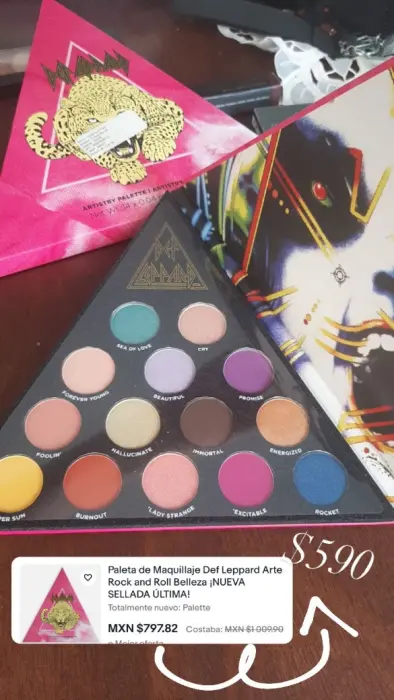 Paleta de sombras con 14 tonos super pigmentados, tonos mate y satinados, edición especial Deff lepard