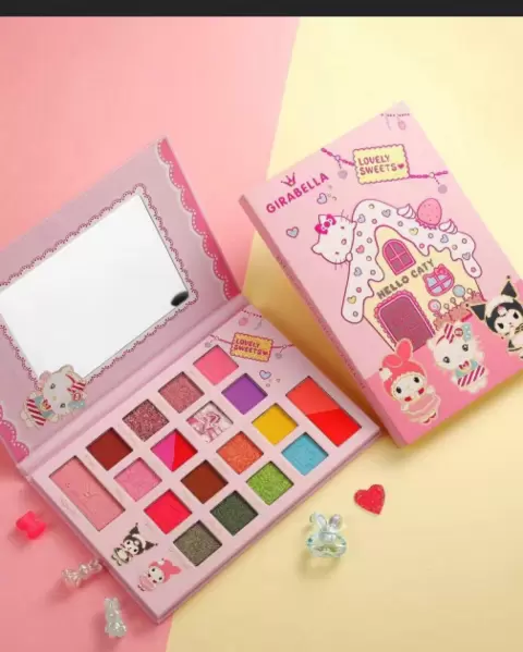 Paleta de sombras Kitty 💕. Hermosa paleta de sombras con 16 tonos diferentes , 2 rubores y 1 iluminador la paleta más completa que necesitas ‼️✨