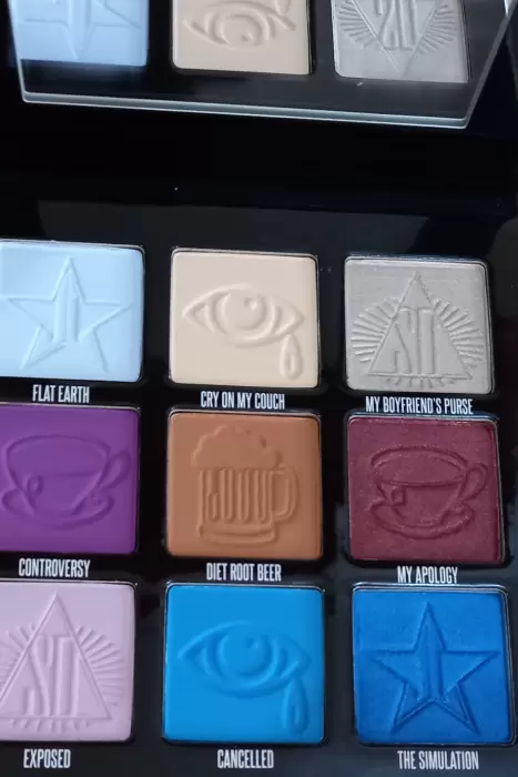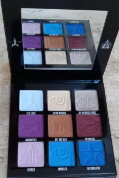 Paleta de Sombras Mini Controversy Jeffree Star. Preciosa paleta de 9 sombras perteneciente a la colección Conspiracy. En esta paleta encontrarás sombras con acabado mate y metálico combinadas entre sí para lograr looks increíbles. Sombras altamente pigmentadas y fácil de difuminar. Incluye la nueva sombra metalizada Put It Back. Vegan. Cruelty free. 9 sombras de 1.50g cada una.