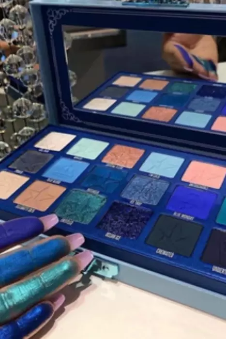 Sombras. Los tonos azules y metalizados para un look de reina del hielo.Esta paleta de sombras contiene 18 tonalidades hermosas en tonos mate y metalizados con una pigmentación increíble. La paleta de metal está inspirada en cajas de joyería de alta gama y ataúdes. Este es un producto vegano y libre de crueldad animal.Esta paleta ofrece impresionantes tonos azules, mentas y duraznos crear looks unicos