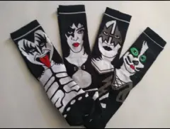 ✨4 pares de Calcetas del grupo KISS, quedan del No. 22 al 28 y llegan aproximadamente a mitad de la pantorrilla. Son unisex✨