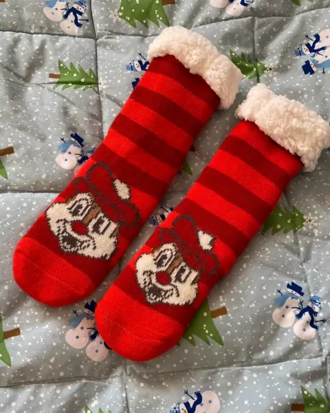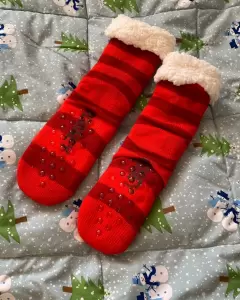 Calcetines invernales rojos. Calcetines super calentitos y cómodos, afelpados por dentro. Uno es un poco más pequeño que el otro pero el detalle no interfiere en nada en su uso y lucen super lindos.