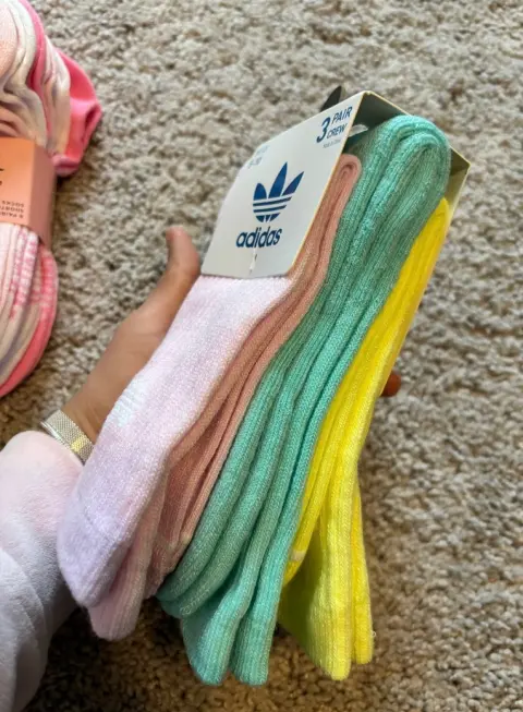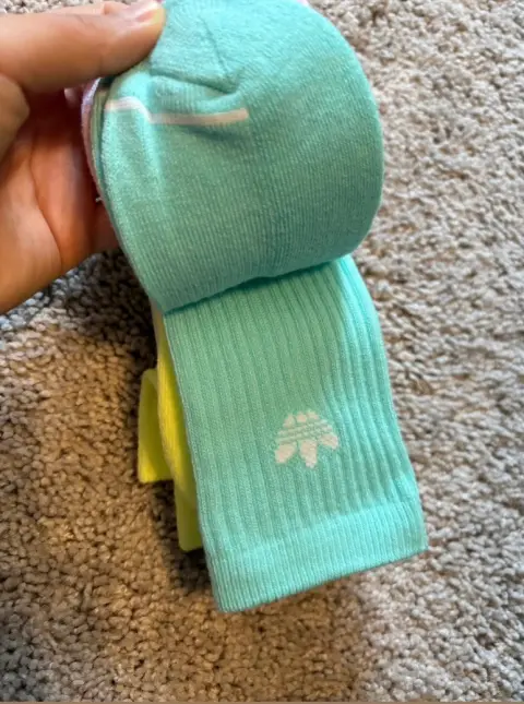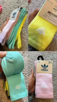 Paquete de 3 calcetas ADIDAS originales. Incluye un par en color rosa, amarillo y aqua. Completamente nuevas con etiqueta. Dan de 22-27 centimetros. Cualquier duda pueden preguntar.