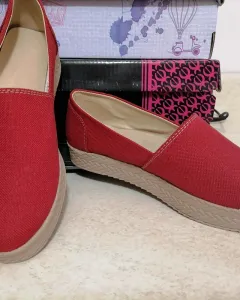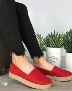 Hermosos mocasines tipo sneakers. En lona roja con suela sintética simulando mecate.