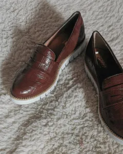 Mocasines color cognac. Mocasines color cognacForro sintético tipo piel de cocodrilo color cognac.Son totalmente nuevos.En la etiqueta dicen 24.5 pero en realidad le van bien a un 24 vienen reducidos.