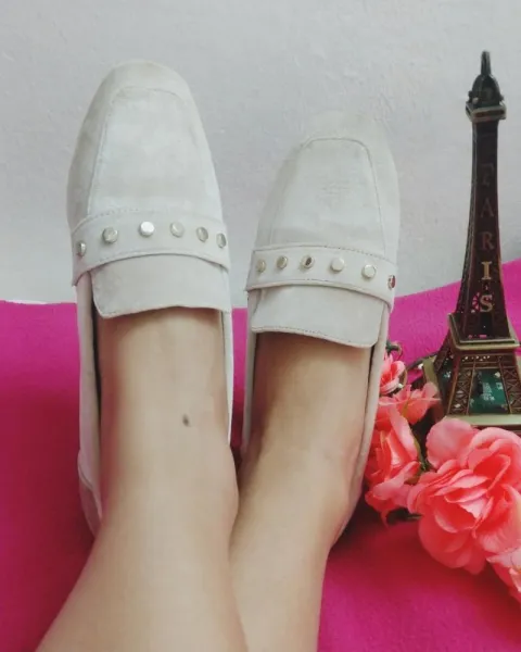 Mocasines rosa palo con estoperoles. Mocasines cómodos de piel originales, por fuera la tela es tipo terciopelo. Súper combinables y hermosos ¡ Te van a encantar! Detalles en color de estoperoles poco perceptible en fotos.Te regalo $100 en tu primer compra en shoppiland.com con el siguiente código: Lafemmelegant2BlwE9