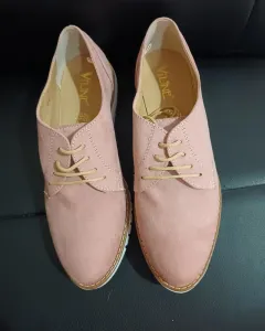 Mocasines rosas. Mocasines de gamuza rosas, con agujetas, con suela antiderrapante