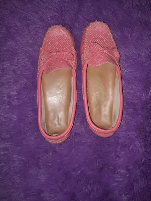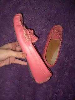 Zapato tipo mocasines color rosa coral, talla 4, semi nuevos, en perfecto estado