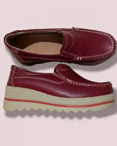 Zapatos de cuero con plataforma,color vino, están muy cómodos, talla 22 cm. Son nuevos. :)
