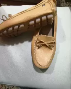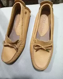 Zapatos mocasines nuevos sin detalles cómodos color mostaza con un moño en la parte frontalSon de piel
