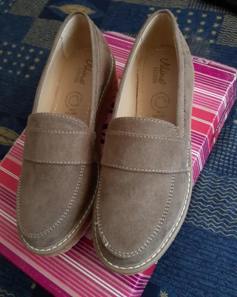 Zapatos nuevos de gamuza. Zapatos nuevos de el No. 4.5 número exacto sin ningún detalle muy bonitos y modernos