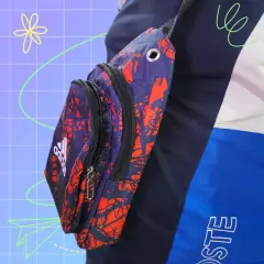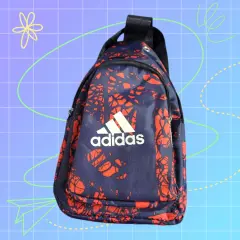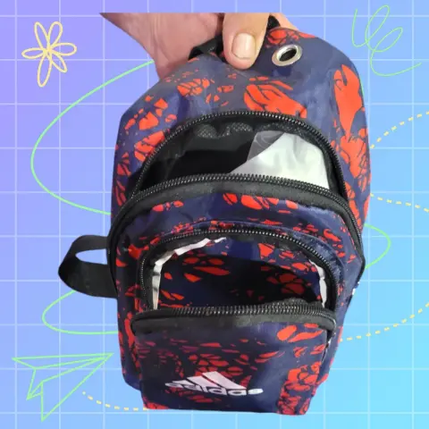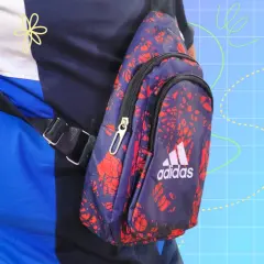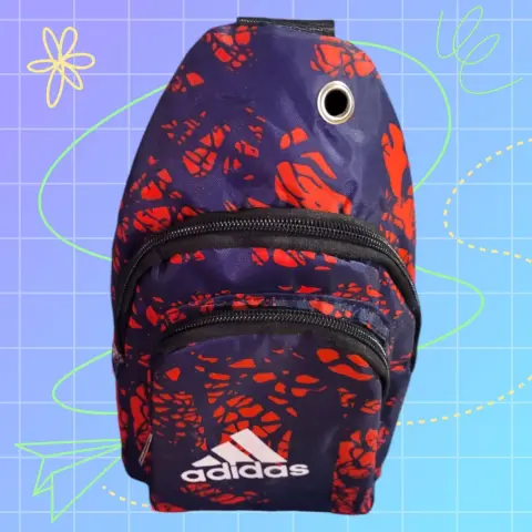 Adidas Cangurera doble Chica, color rojo con negro, logo oficial al frente, doble compartimiento con cierre, banda ancha ajustable, boton de ventilation, hecha de polietileno, mide 31cm de largo, 17cm de ancho con 5cm de ancho en la base y 105cm de la banda ajustable, nueva a estrenar sin etiqueta en buen estado cosmetico.