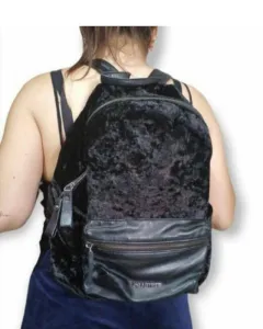 Back pack sintetico negro en terciopelo es pequeña y amplia tiene las asas sintéticas Medidas: 26x32. POR FAVOR SI NO ES TU COMPRA SEGURA NO RETENGAS EL ARTICULO ANTES PUEDES PREGUNTAR SIN COMPROMISO SOBRE TUS DUDAS DE ALGÚN DETALLE
