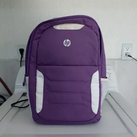 Back pack HP. Puede ser para útiles y laptopEl color es hermosa En realidad se usó más para viajes largos que llevarla de diario al trabajo o universidad, tiene manchas que con paño húmedo se van, no están impregnadas.💖💞Demasiado cómoda, la necesito sacar porque mi lap ya es más grande y en realidad está guardada.
