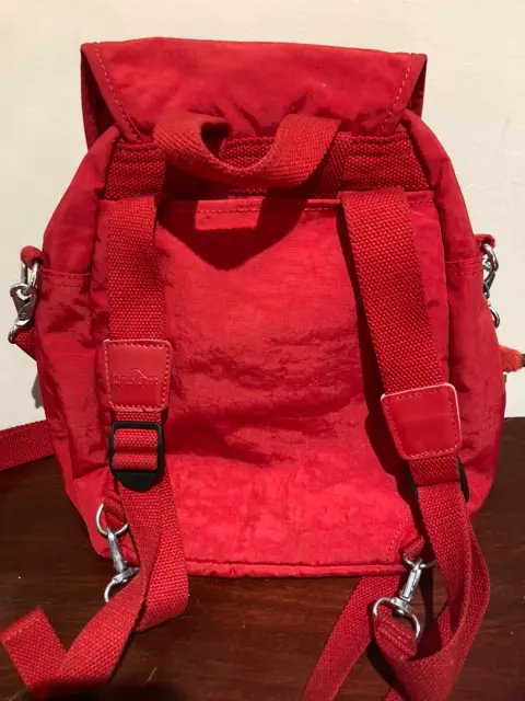 Back pack pequeña Kippling. Mochila pequeña casual, color rojo, con llavero de gorila original
