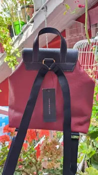 Back Pack Tommy Hilfiger Roja muy espaciosa solapa color azul puede expandir más con los broches de costado