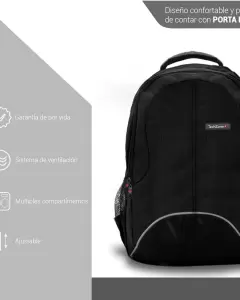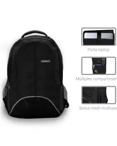Backpack SPORT para Laptop 15.6" doble compartimiento, bolsas laterales, seguro en asas, nueva lista para entrenar.