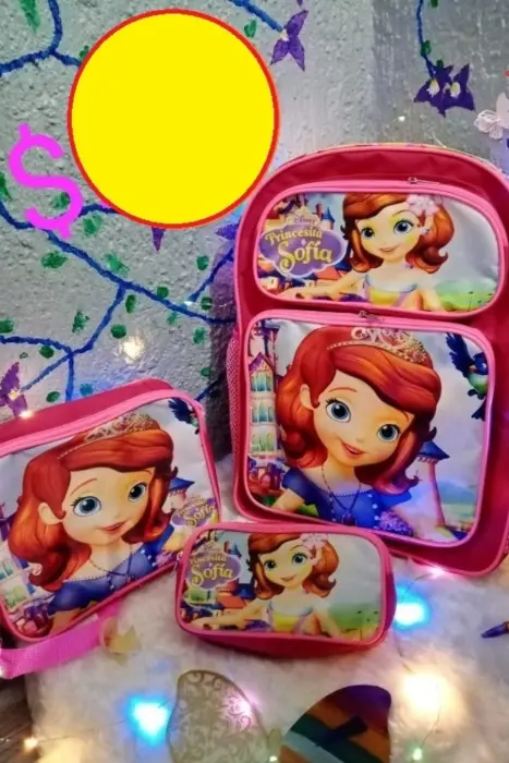 Kit de mcohila de princesita Sofia. Hermoso y practico kit de Mochila con lonchera y lapicera de princesita Sofia