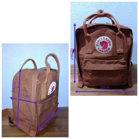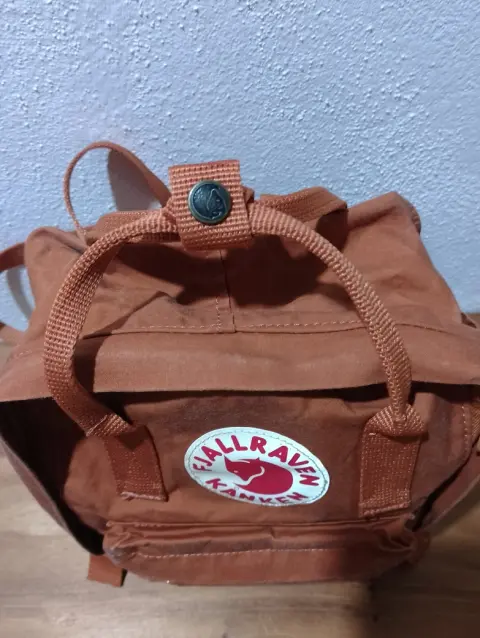 Mini backpack FJALLRAVEN KANKEN terracota. Mini backpack FJALLRAVEN KANKEN color terracota, las medidas vienen en las fotos. Está en muy buen estado. Se le ven como algunas partes el color como cenizo pero pasa en esta marca en todos los colores por qué es como muy rígida. Pero son casi imperceptibles y sucede aunque no se usen. Pregunta cualquier duda