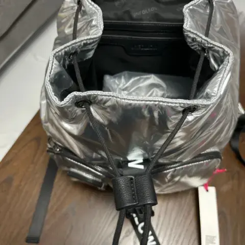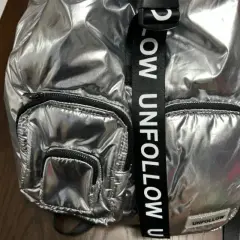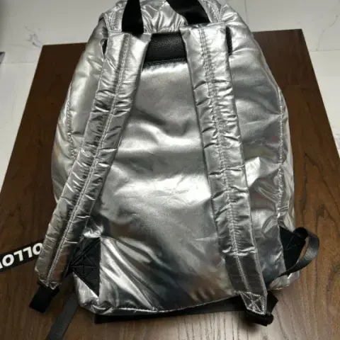 Mochila grande metalizada. Mochila nueva sin ningún detalle grande, le cabe perfectamente los libros, lap top etc