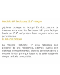 Mochila HP TechZone. Mochila de laptop de hasta 15.4" nueva con etiqueta acolchonada con entrada para audifonos