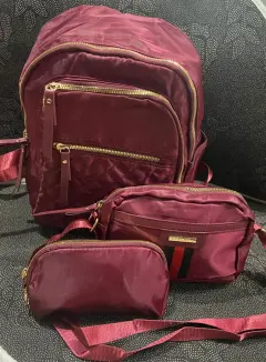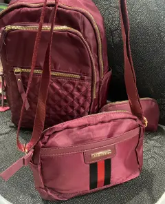 Mochila trío vino/guinda ❤️. Mochila trío vino/guinda ❤️Mochila tres cierres Lapicera Bolsa/Cosmetiquera incluye correa ajustable