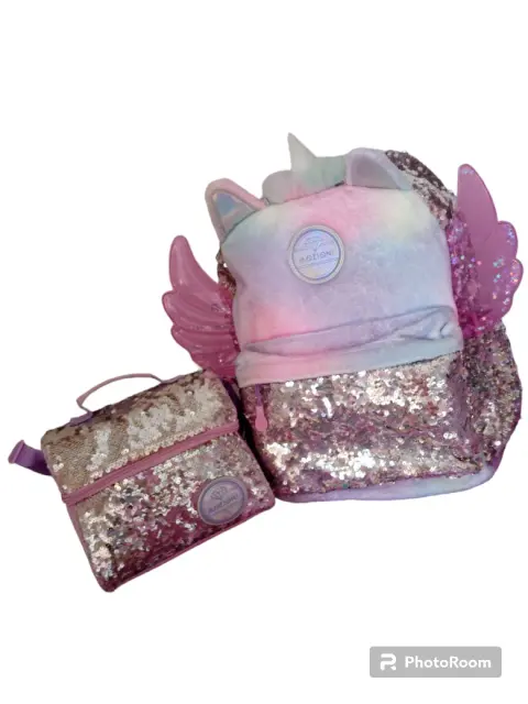 Mochila unicornio 🦄. Linda mochila unicornio 🦄 con su lonchera solo se uso una semana , le quedó grande a mi hija de primero de primaria, original.