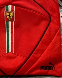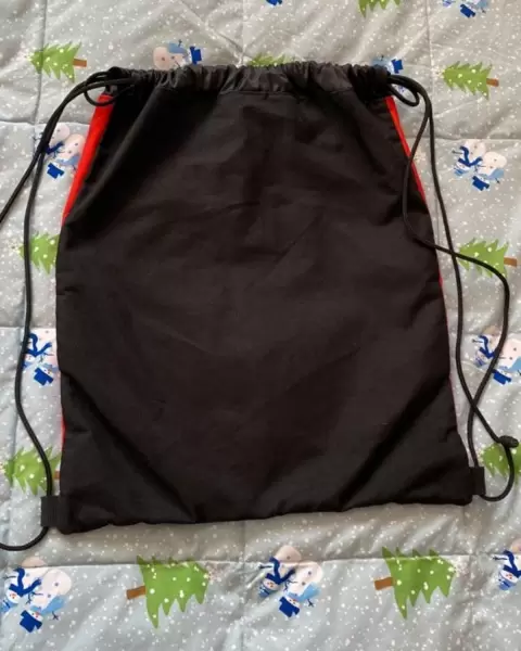 Morral rojo. Resistente y le cabe bastante, es morral. Original y muy padre.