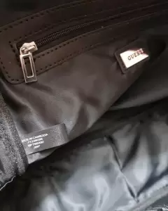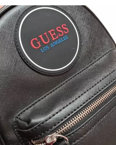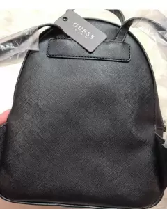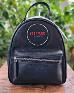 Padrisima Mochila Guess pequeña. Tiene cierres por dentro y por fuera asi como departamentos para guardar cositas, tiene el logotipo en grande en un circuloMedidas: largo 24 cm x ancho 10 cm x alto 28 cmCombina con todo!