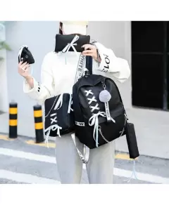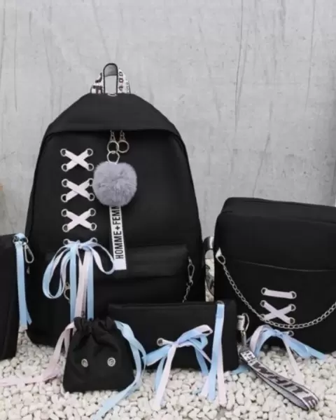 Set de mochila y 4 bolsos. Padrisimo set de mochila, crossbody, cartuchera, monedero, muñequera. material resistente a la decoloracion por el sol. la mochila tiene orificio para auriculares.Tamaño de la mochila: 30x13x41 cm