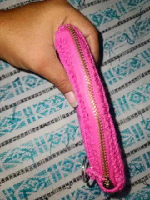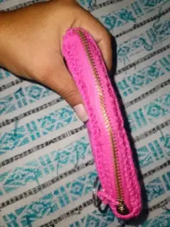 Monedero o cosmetiquera de 15cm x 10cm, color rosa, producto nuevo hecho a mano con técnica de crochet, listo para enviar ☺️ incluye cierre y forro, y trae de regalo un pequeño monedero azul con rosa