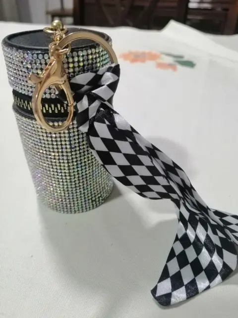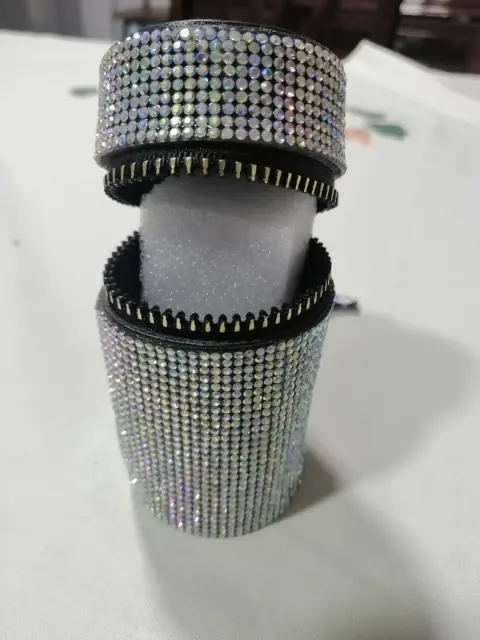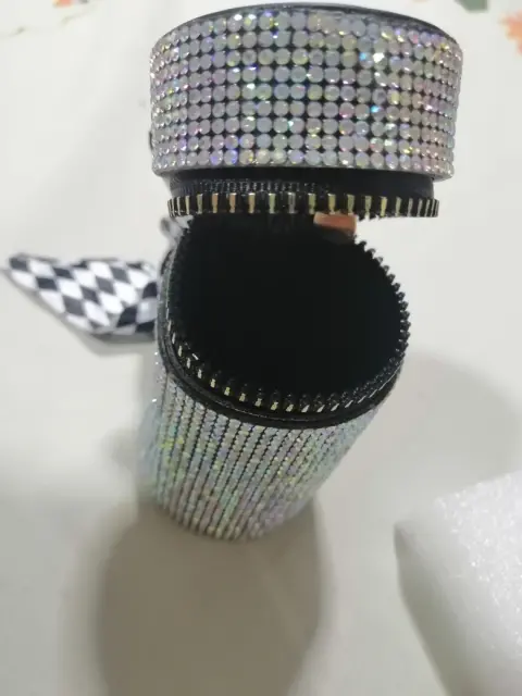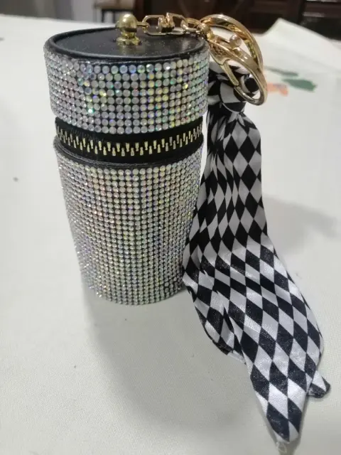 Monedero cilindro con piedras. Monedero en forma de cilindro con piedrasMonedero en cilindro con piedras decorativas que lo hacen ver hermoso y a la moda ideal para colgar en la bolsa ya que tiene broche (anexo foto) liston decorativo nuevo listo para usarlo como monedero o para guardar lo que deseesEnvio los días viernes