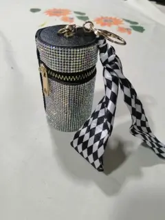 Monedero en forma de cilindro con piedrasMonedero en cilindro con piedras decorativas que lo hacen ver hermoso y a la moda ideal para colgar en la bolsa ya que tiene broche (anexo foto) liston decorativo nuevo listo para usarlo como monedero o para guardar lo que deseesEnvio los días viernes