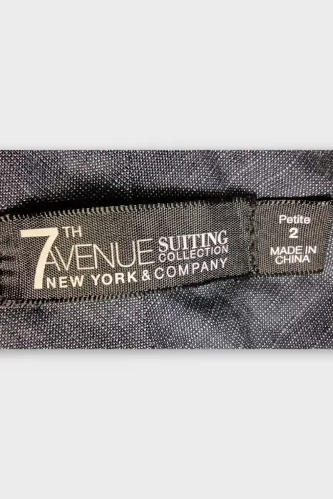 7thAvenue Pantalón Formal Dama Polyester XXS 2. 7thAvenue Pantalón Formal Dama Polyester XXS 2Marca: 7ThAvenueOrigen: ChinaMaterial: 78% Polyester 20% Rayón 2% SpandexTalla: XXS - 2Estilo: FormalPatrón: CampbellColor: GrisCierre: Cremallera y BrocheCintura: 35 cmCadera: 46 cmLargo: 93 cmTiro: 14 cmMuslo: 24 cmEntrepierna: 28 cmRopa de USO en muy buen estadoModelo único Lo que ves es lo que comprasAclara todas tus dudas antes de comprar