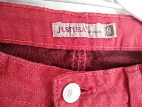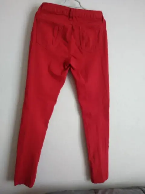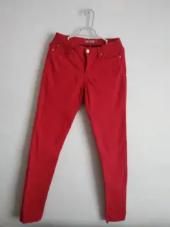 Pantalón stretch rojo, talla 9, tiro delantero 24cm, tiro trasero 31cm, largo 103cm,