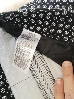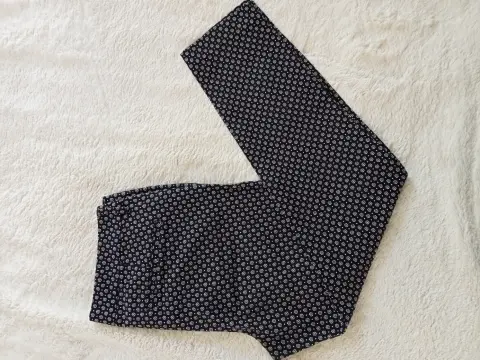 Pantalón Capri abajo del tobillo, negro con blanco en forma de flores. Dos bolsillos al frente.Algodón.Talla: 8 regular.