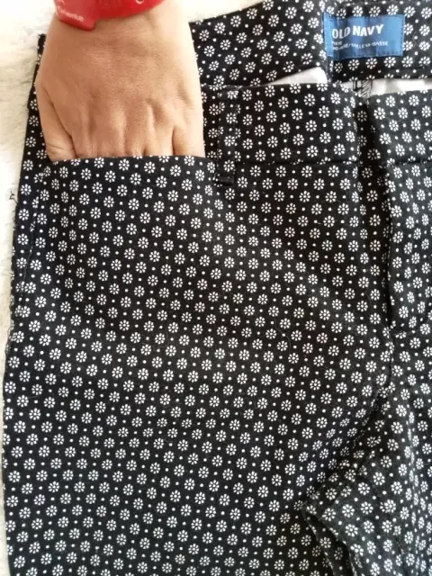 Capri Old Navy. Pantalón Capri abajo del tobillo, negro con blanco en forma de flores. Dos bolsillos al frente.Algodón.Talla: 8 regular.