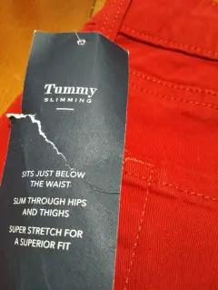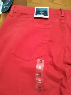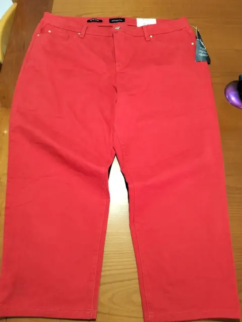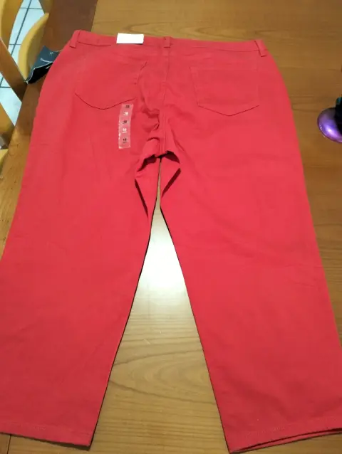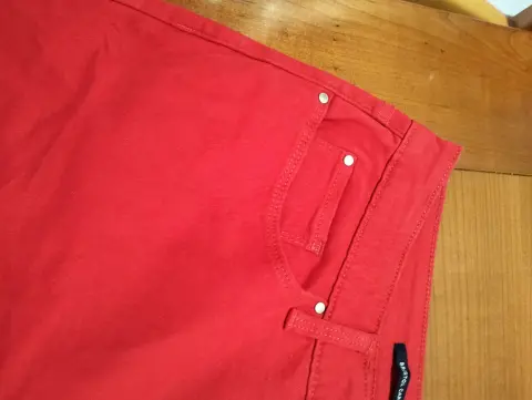Bonito Capri rojo tipo jeans con bolsas por delante y por atras bienes muy reducido da a 1XL o 2XL