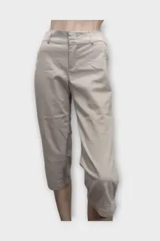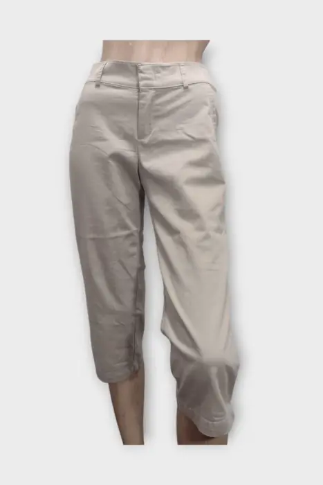 DOCKERS Pantalón Capri Dama Algodón Chinos XS 4. DOCKERS Pantalón Capri Dama Algodón Chinos XS 4Marca: DOCKERSOrigen: ChinaMaterial: 54% Algodón 43% Polyester 3% SpandexTalla: XS - 4Estilo: ChinosPatrón: CapriColor: CaquiCierre: Cremallera y BrocheCintura: 37 cmCadera: 46 cmLargo: 77 cmTiro: 14 cmMuslo: 29 cmEntrepierna: 31 cmRopa de USO en muy buen estadoModelo único Lo que ves es lo que comprasAclara todas tus dudas antes de comprar