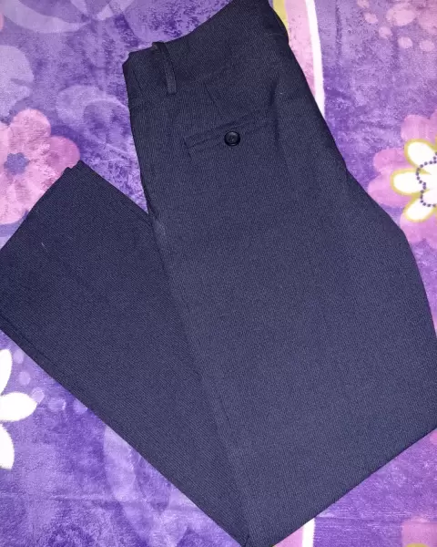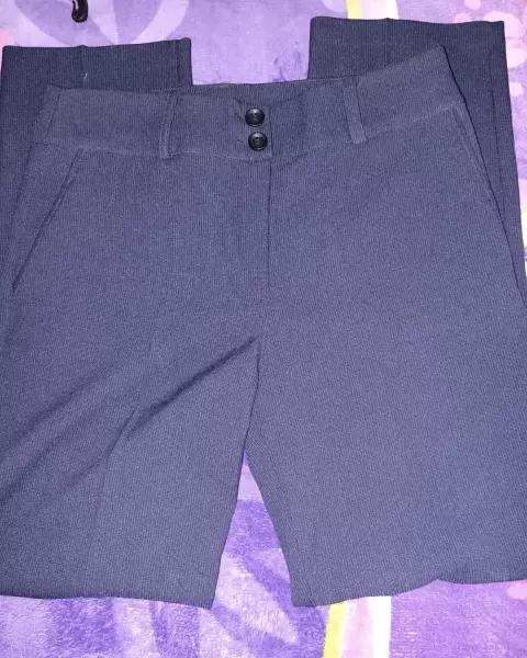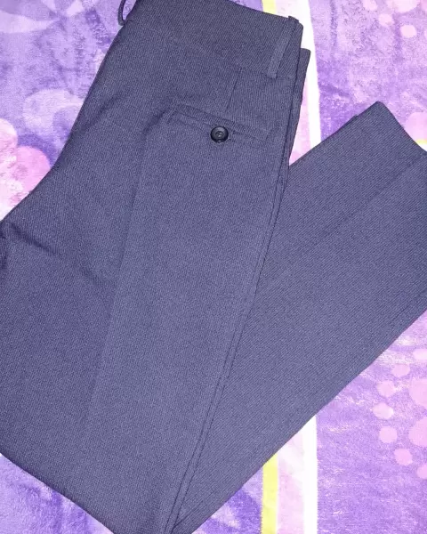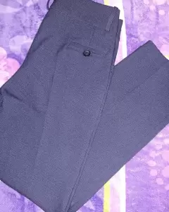 Elegante pantalón de vestir. Pantalón de vestir azul, tiene rayas verticales, es recto, no tiene ningún detalle, tiene bolsas en la parte de enfrente las bolsas de atrás solo son simuladas.