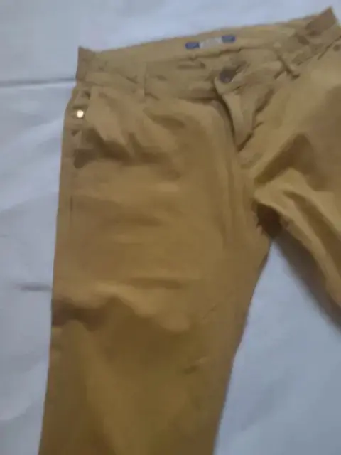 Excelente pantalón Pull &bear. Pantalón cómodo, color mostaza, se ajusta muy bien al cuerpo, talla 26, color muy vivido, tiene solo unos detalles de tinta de pluma y unos puntos más claros en la parte baja.