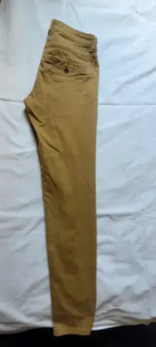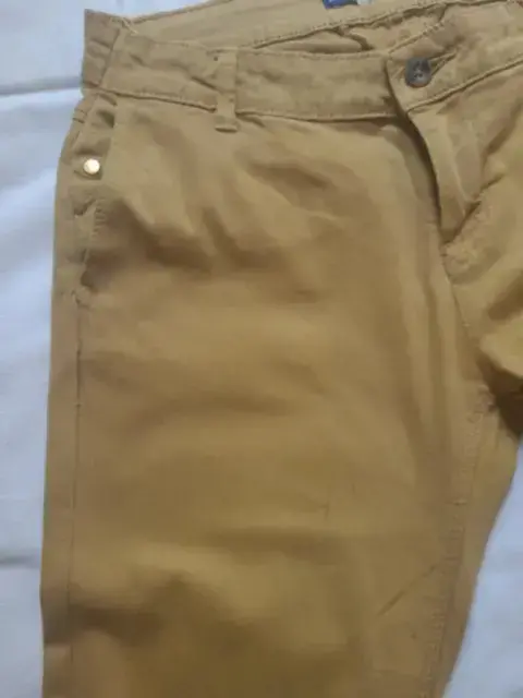 Pantalón cómodo, color mostaza, se ajusta muy bien al cuerpo, talla 26, color muy vivido, tiene solo unos detalles de tinta de pluma y unos puntos más claros en la parte baja.