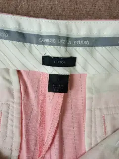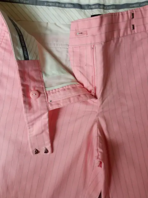 Pantalones de editor de Express Design Studio color rosa con finas rayas en azul, talla 6.Es Capri anchos, nuevos sin etiqueta.Materiales: 97% algodón y 3% spandex.Medidas: 83 cm de largo, 80 cm cintura, 92 cm en cadera50 cm ancho en piernas.
