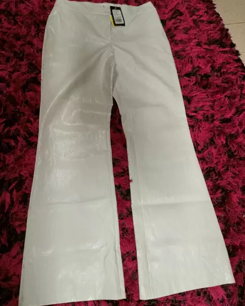 Hermoso pantalón cuero sintetico. Elegante, hermoso pantalón blanco marfil ... talla 14. Cuero sintetico super suave y cómodo
