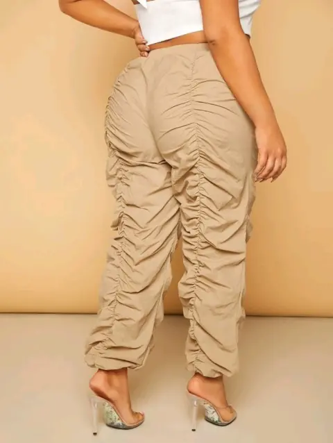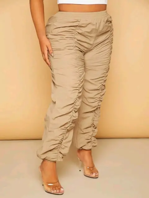 Hermoso y sexy pantalon corrugado. Pantalón casual, fruncido, sin forro, casual, liso, tela tricotada. Talle alto, 100% poliamida.