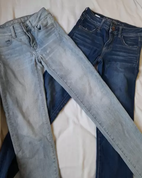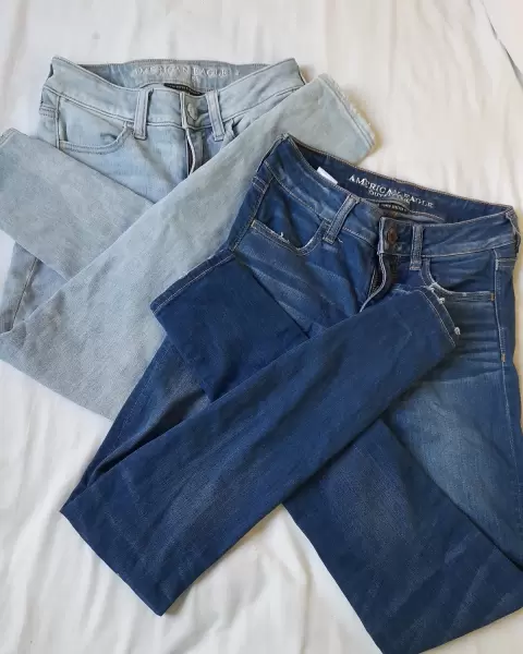 Jeans american Eagle dos. Poco uso, pueden ser inviduales en mi muro pero salen más baratos en par, pueden usar cupones de descuento nenas